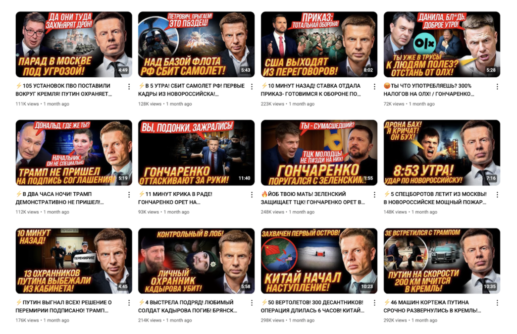 Серед російськомовних YouTube-блогерів також значиться нардеп від “слуг” Євгеній Брагар, Юрій Бойко (“ПЗМЖ”) та ще один мажоритарник-утікач Артем Дмитрук (колишній слуга, а наразі член депутатської групи “Відновлення України”).