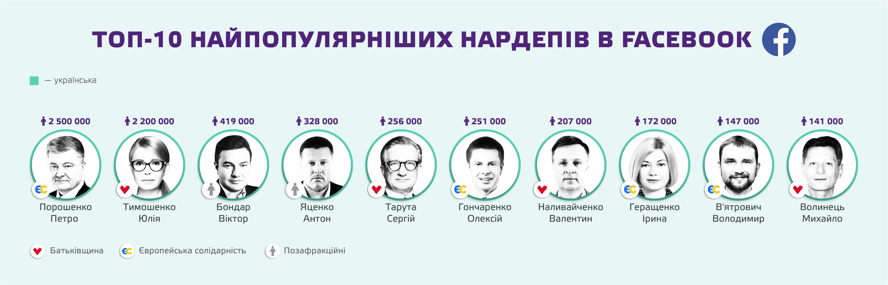 Цікаво, що найпопулярнішими в соцмережах не завжди є лідери партій. Така тенденція стала характерною лише для “Батьківщини” та “Європейської Солідарності”.