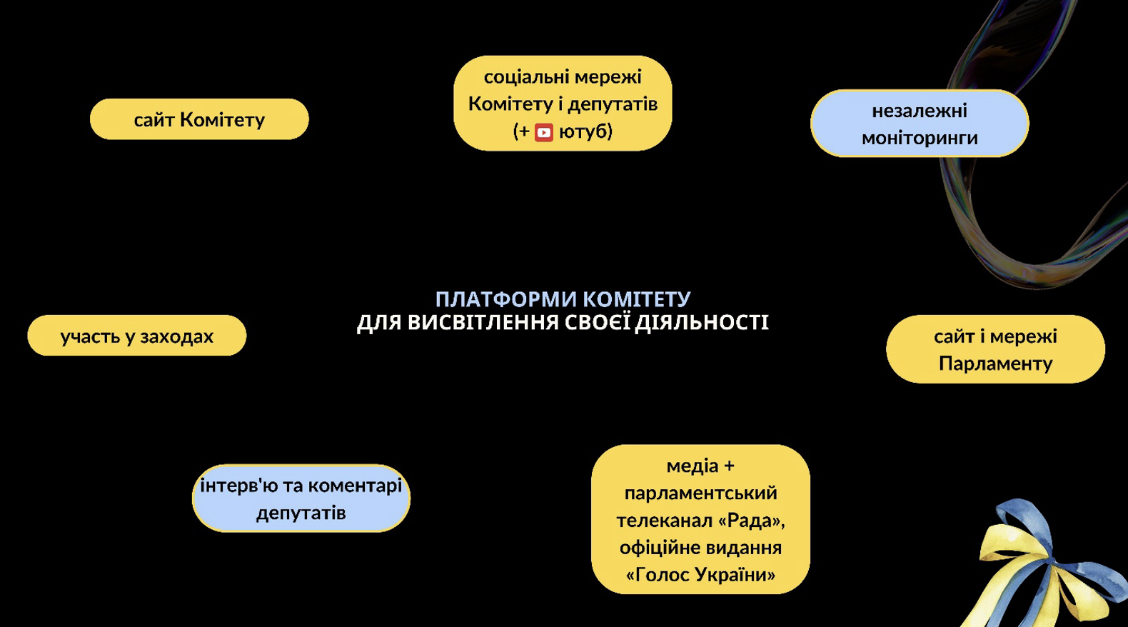 Тож публічні канали комунікації комітету мають такий вигляд (на прикладі Комітету з питань гуманітарної та інформаційної політики):