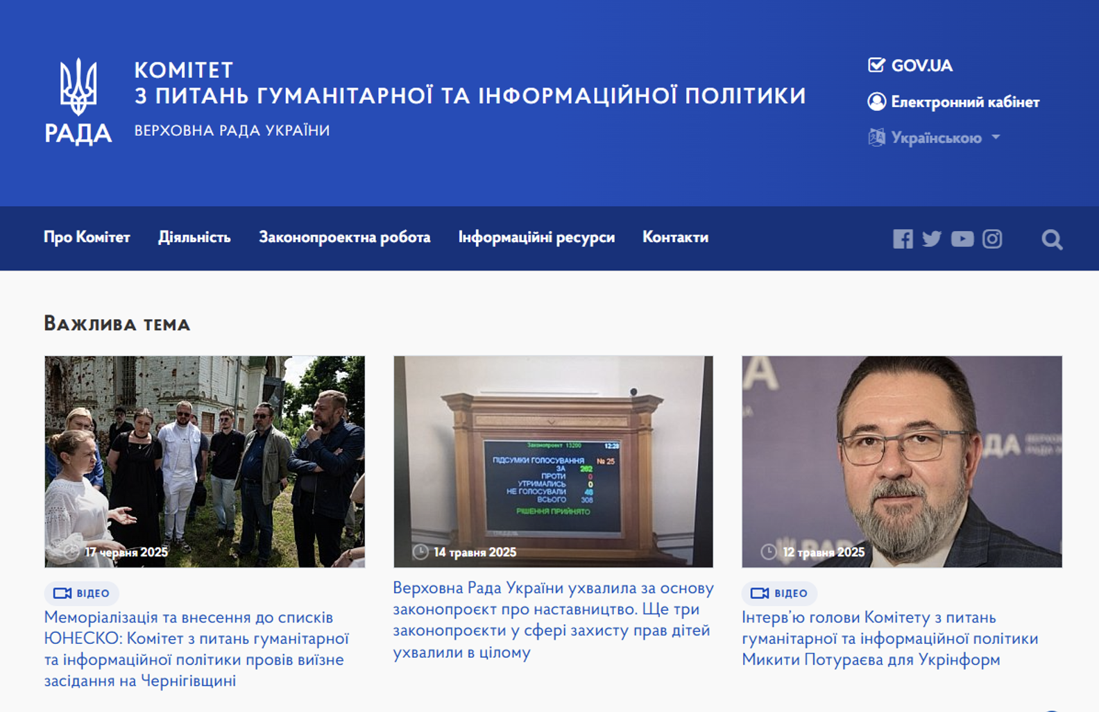 — сайт і соціальні мережі Комітету, YouTube-канал;