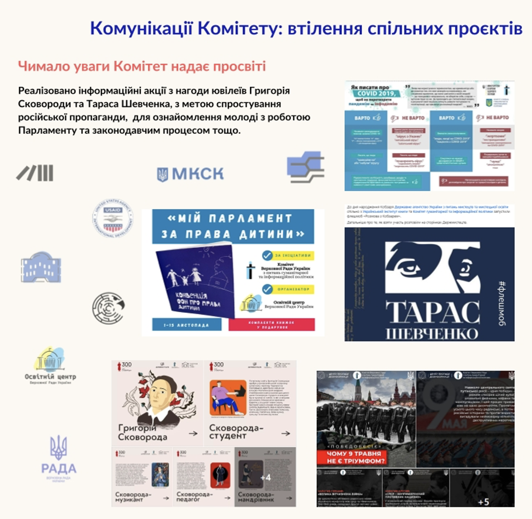 Комітет з питань гуманітарної та інформаційної політики працює на перетині важливих сфер: медіа, культури, захисту прав сім’ї та дітей, захисту державної мови тощо. Така тематика неначе вимагає від комунікаційника комітету особливої уваги до змісту, контексту і тону повідомлень, відповідальності за слово, грамотності й ретельного фактчекінгу.