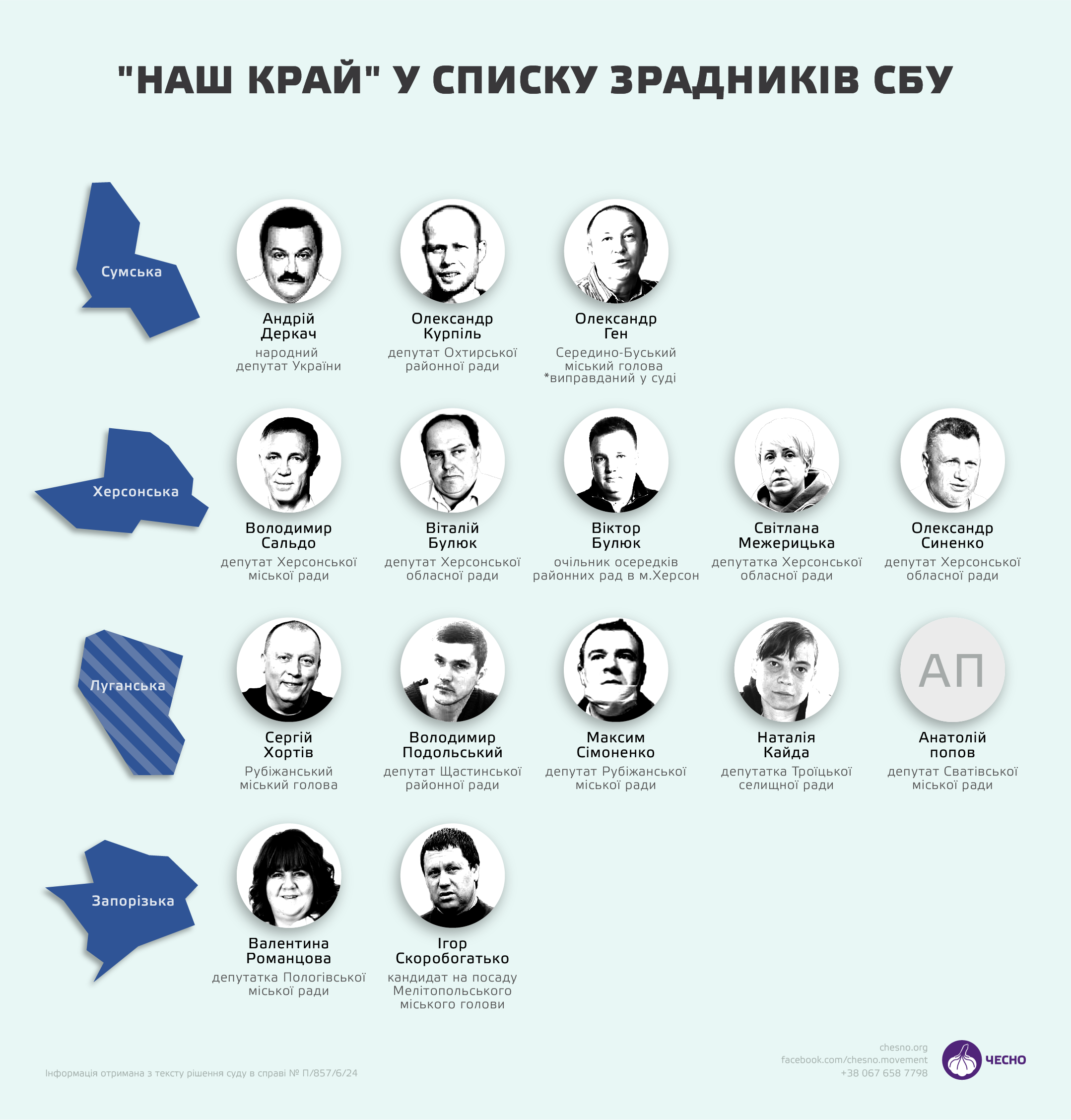 Крім них “Наш край” мав у своїх лавах і дрібніших прибічників окупантів. Проте в керівництві партії стверджують, що їх не більше, ніж в інших не заборонених політсилах.