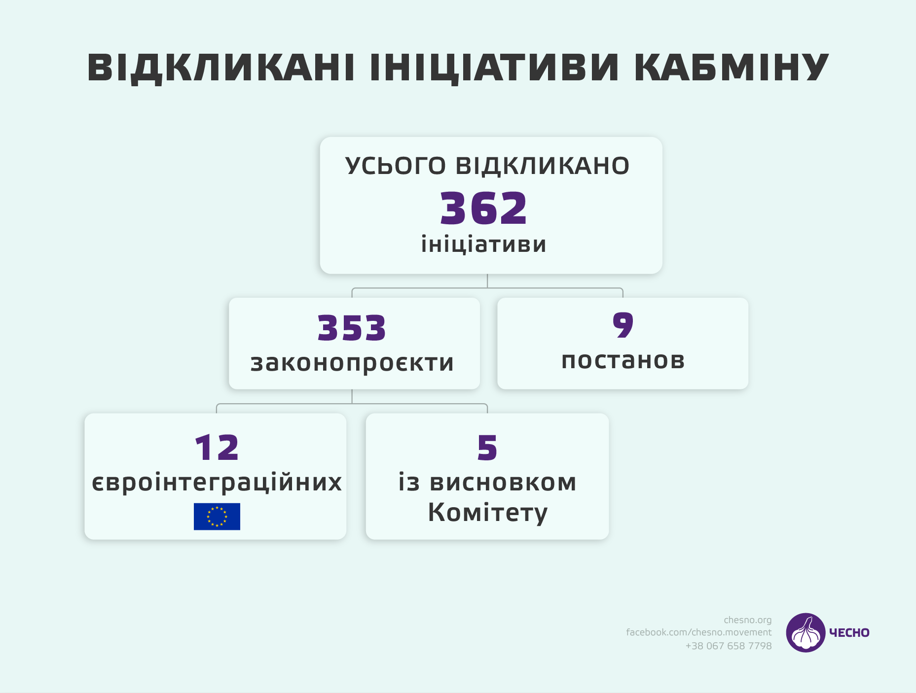 Рух ЧЕСНО вирішив проаналізувати, які саме ініціативи Кабміну відкликали, які парламент розгляне знову та хто на це впливає.