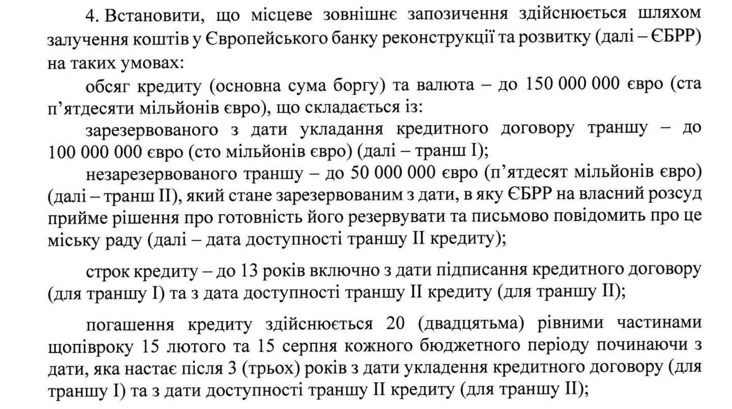 За день до зустрічі столичних депутатів у сесійній залі, міський голова зареєстрував проєкт “Про здійснення запозичення до бюджету міста Києва шляхом залучення кредиту Європейського банку реконструкції та розвитку (ЄББР) у 2025 році”.