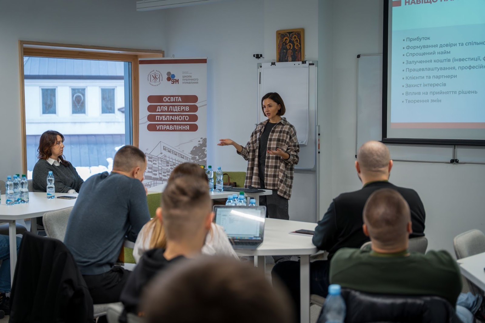 Засновниця та СЕО комунікаційної агенції UK Comms Уляна Колодій розглянула з ветеранами ключові принципи та інструменти, з яких формується репутація та персональний бренд. Учасники переконалися, що це не просто набір випадкових слів і дій, а сформована стратегія — її Уляна Колодій також допомогла скласти для кожного ветерана та ветеранки особисто. Наступним кроком має бути втілення цієї стратегії в життя.