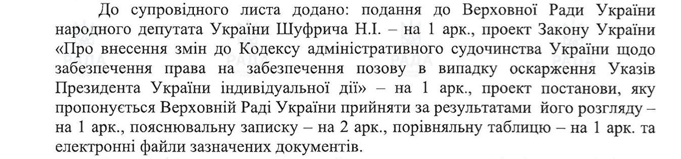 Тоді регламентний комітет Ради розглядає доручення від голови Ради щодо можливості реєстрації законопроєктів, що були внесені Шуфричем. В усіх трьох випадках комітет своїм рішенням давав дозвіл Апарату Ради реєструвати законопроєкти, які надійшли в паперовій формі.
