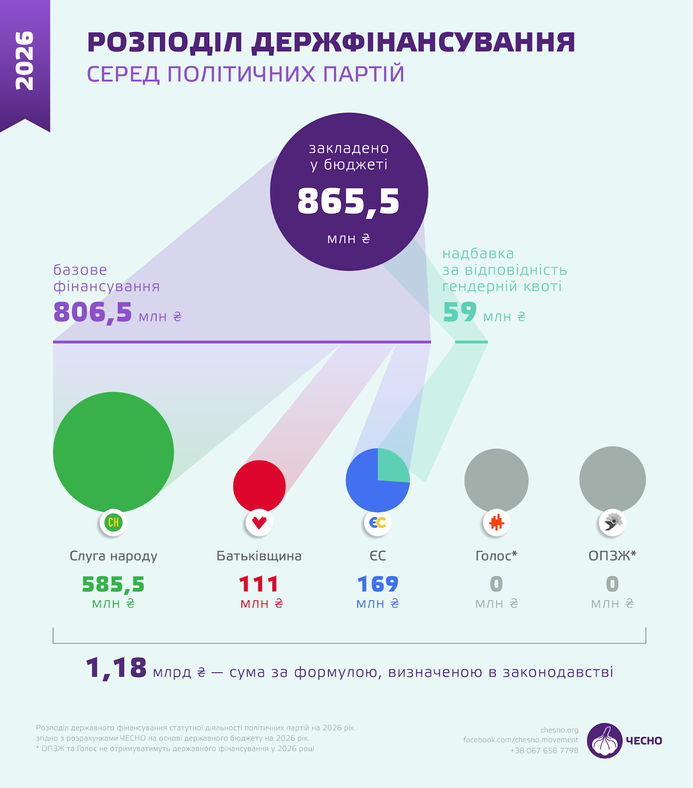 Нагадаємо, що у 2026 році “Слуга народу” має отримати 585,5 млн гривень державного фінансування — найбільше серед усіх партій, представлених в парламенті.