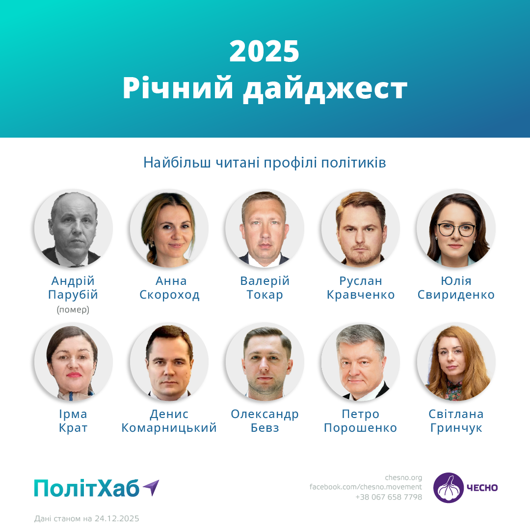 Рух ЧЕСНО проаналізував статистику переглядів профілів на ПолітХабі — однієї з найбільших в Україні бази даних про політиків, — щоб з'ясувати, ким українці найбільше цікавились у 2025 році.