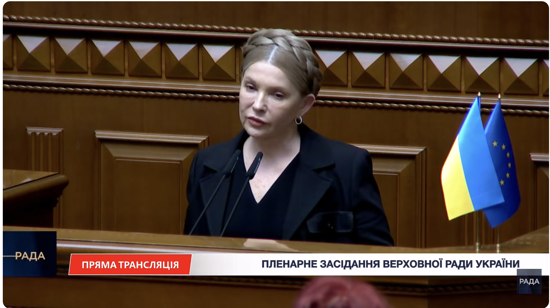 Засідання парламенту розпочалося з виступу лідерки фракції “Батьківщина” Юлії Тимошенко. Напередодні ввечері НАБУ і САП повідомили їй про підозру у пропозиції надання неправомірної вигоди народним депутатам за лояльну поведінку під час голосувань.