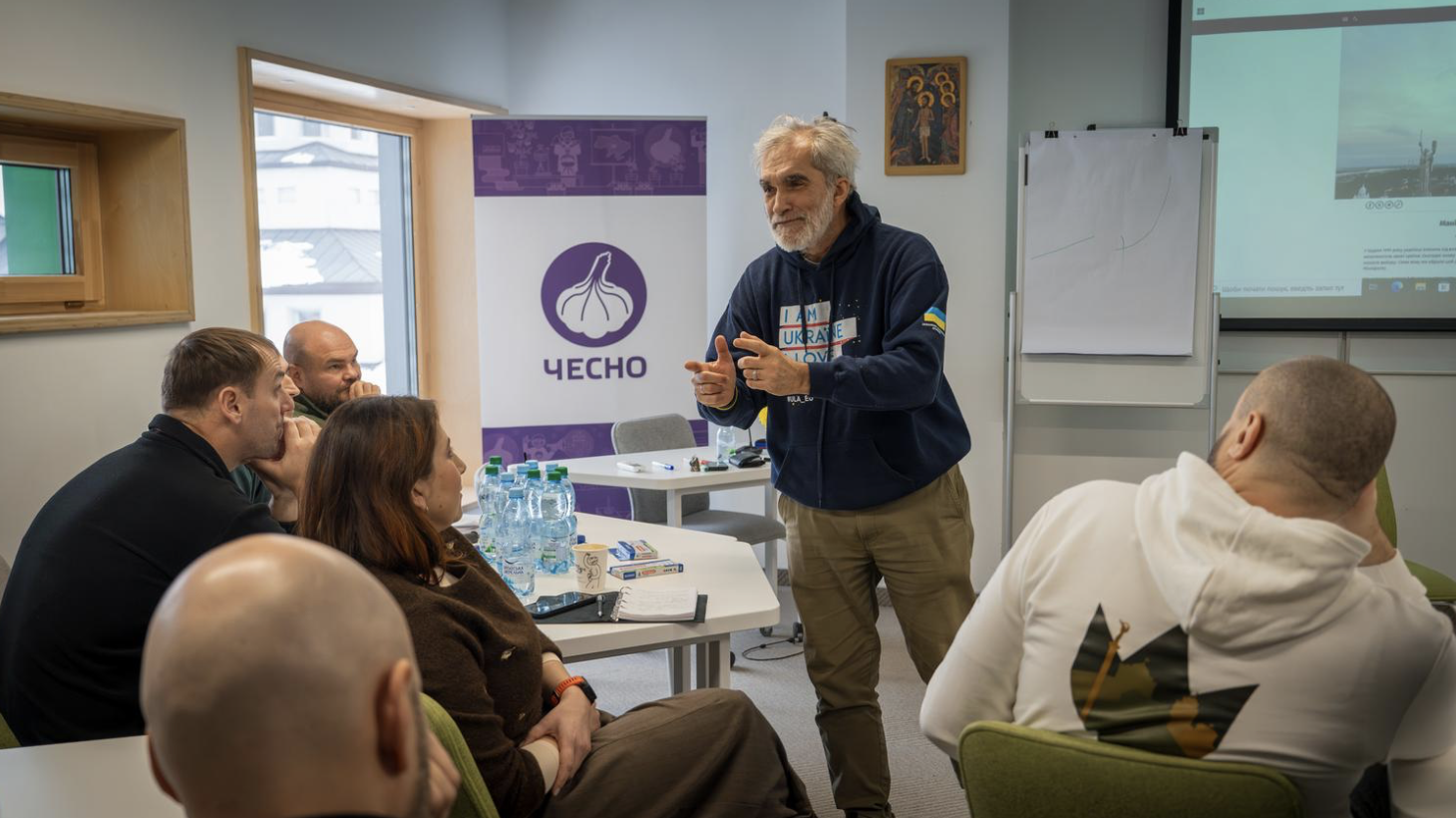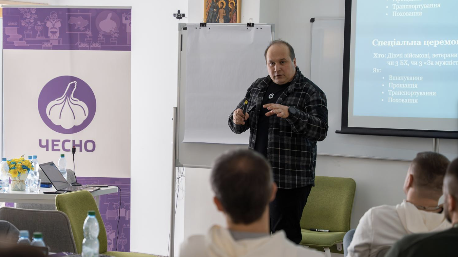 Важливою складовою модуля стали теми памʼятування та психологічної підтримки. Костянтин Татаркін, радник з питань ветеранів IREX, говорив про гідні політики вшанування загиблих захисників і захисниць, а Євген Скляренко, керівник ГО “Повернись до мирного життя”, — про кризове консультування та роботу із залежностями.