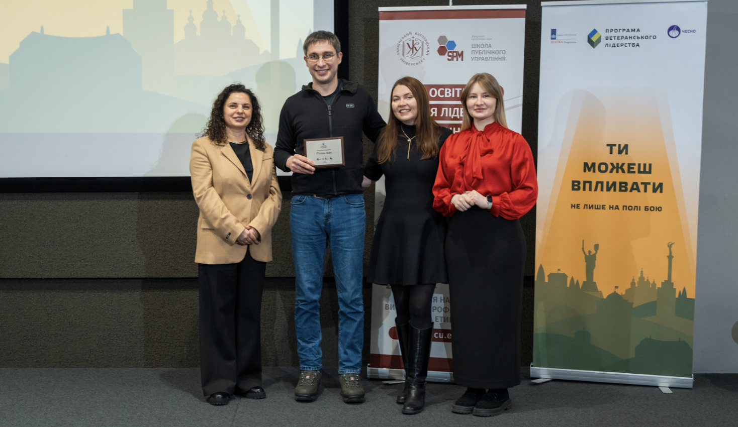 Спеціальну нагороду “Амбасадорка Програми ветеранського лідерства” отримала ветеранка, офіцерка та голова ГО “Ветерани-добровольці” Обухівського району Дара Фугалевич. Відзнаку за найкращу академічну успішність отримав ветеран Іван Пʼятак.