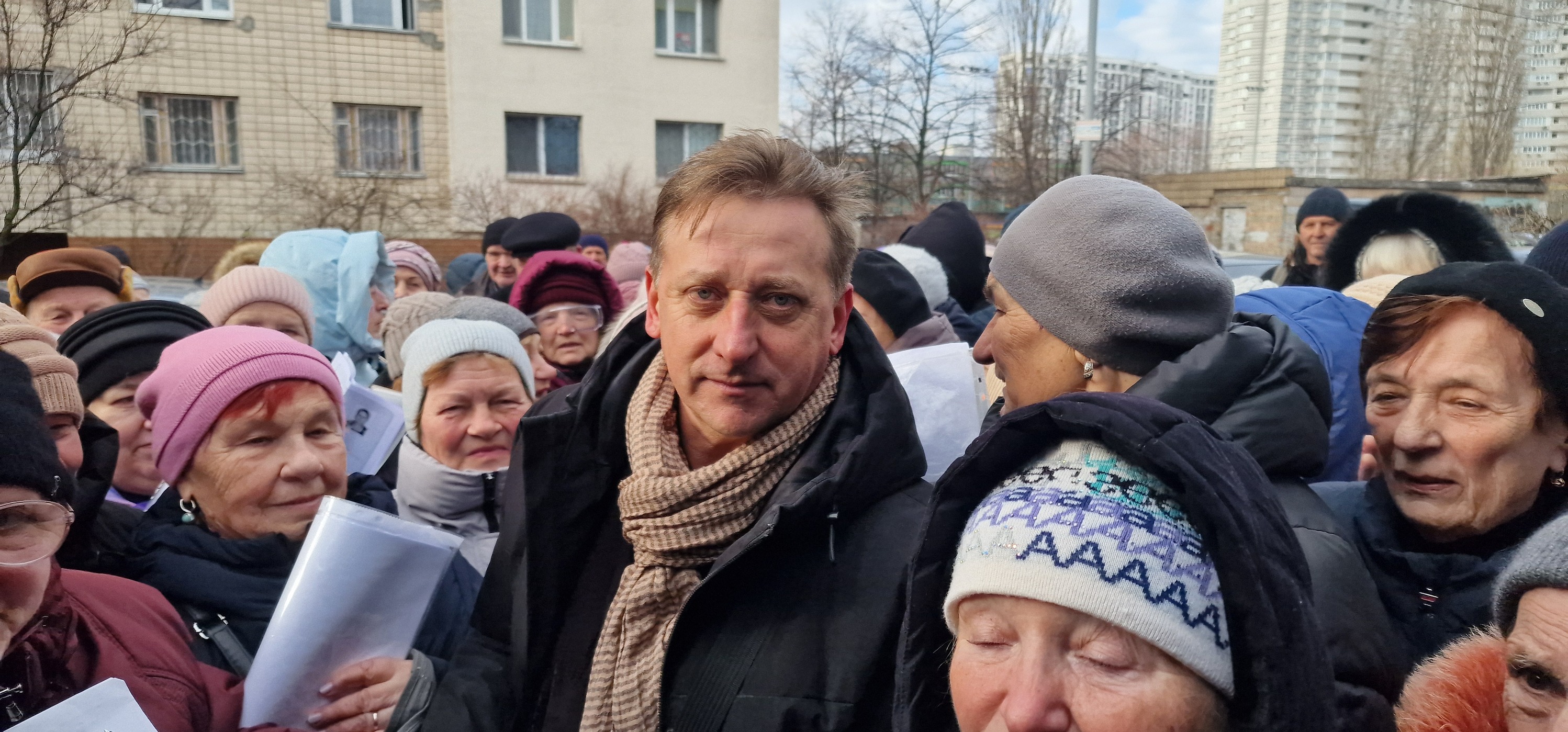 Такий самий натовп був і під приймальнею вже згаданого Ігоря Галайчука, де він разом із “друзями та колегами, народним депутатом України Іваном Крульком та чарівною заступницею голови київської “Батьківщини” Наталією Ромашовою, привітали малозабезпечених мешканців Голосіївського району з наступаючими Великодніми Святами”.