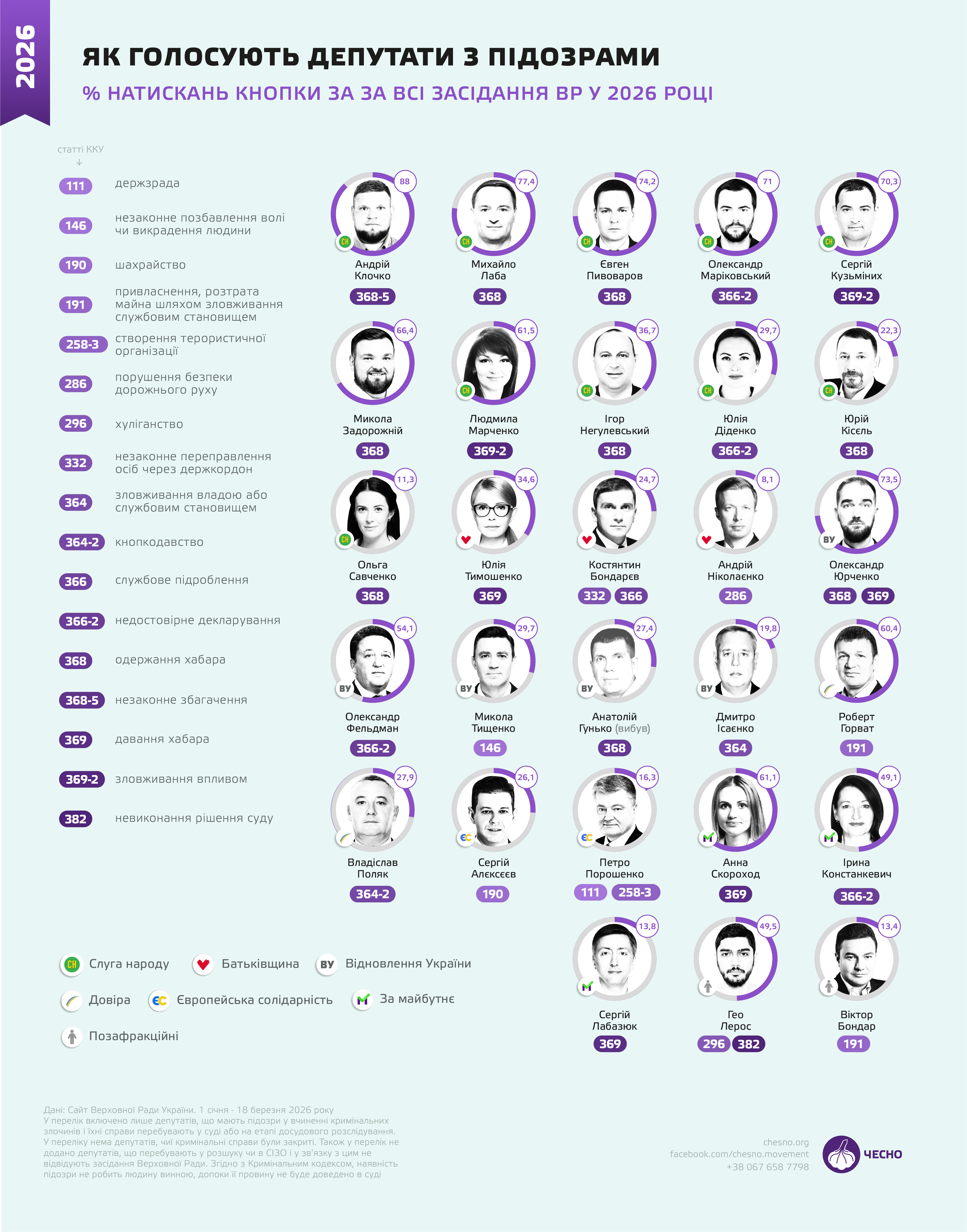 Наприклад, понад 75% натискань “за” за 2026 рік мають Євген Пивоваров і Михайло Лаба — двоє з пʼяти “слуг”, які отримали наприкінці грудня підозру від НАБУ за можливу покупку голосів у Верховній Раді.