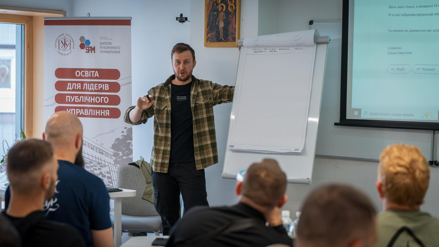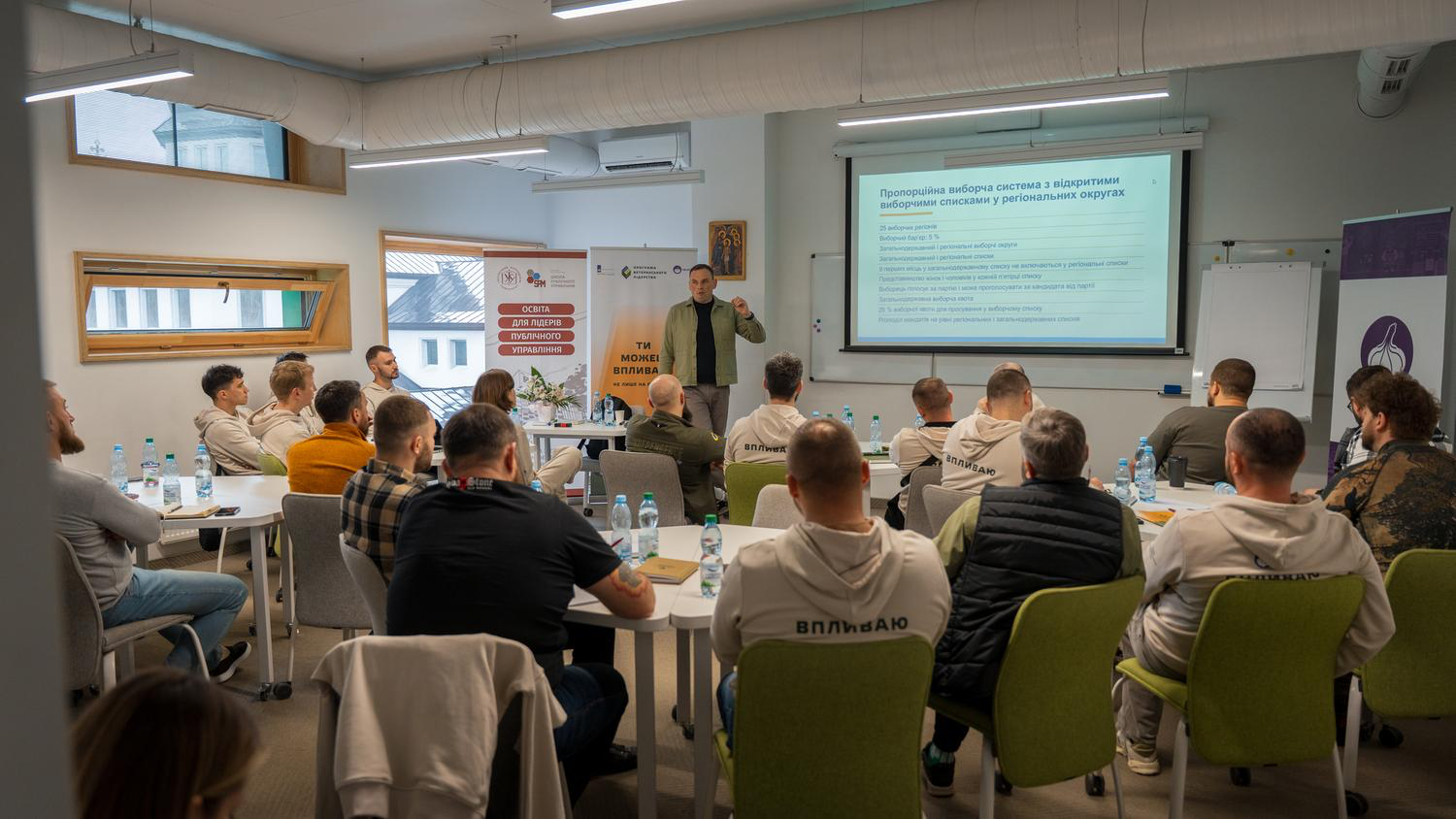Другий день навчання сфокусувався на ширшому контексті — від аналізу сценаріїв розвитку країни до доступу ветеранів до політики. Український публіцист Валерій Пекар разом з учасниками працював над темою “сценаріїв майбутнього”, зокрема обговорювали післявоєнні виклики та глобальні тенденції, що впливатимуть на Україну.