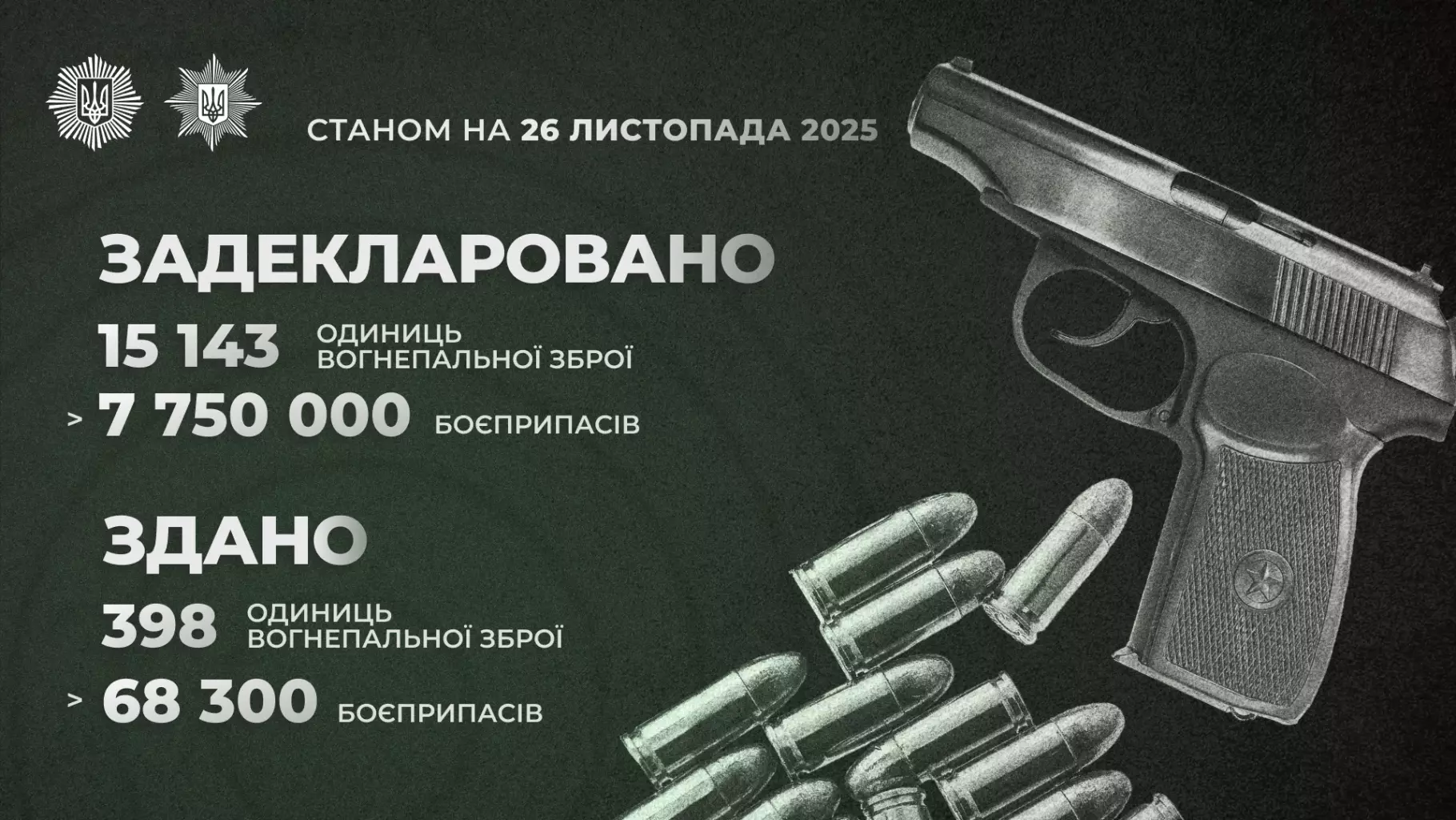 З 7 березня 2022 року в Україні діє Закон №2114-ІХ “Про забезпечення участі цивільних осіб у захисті України”, який регулював порядок декларування знайденої або отриманої вогнепальної зброї. Протягом першого року чинності закону громадяни задекларували понад 15 тисяч одиниць вогнепальної зброї та близько 7,7 мільйона боєприпасів.