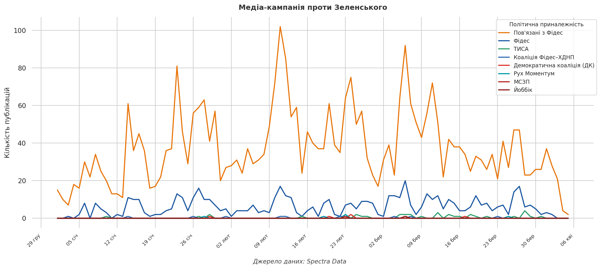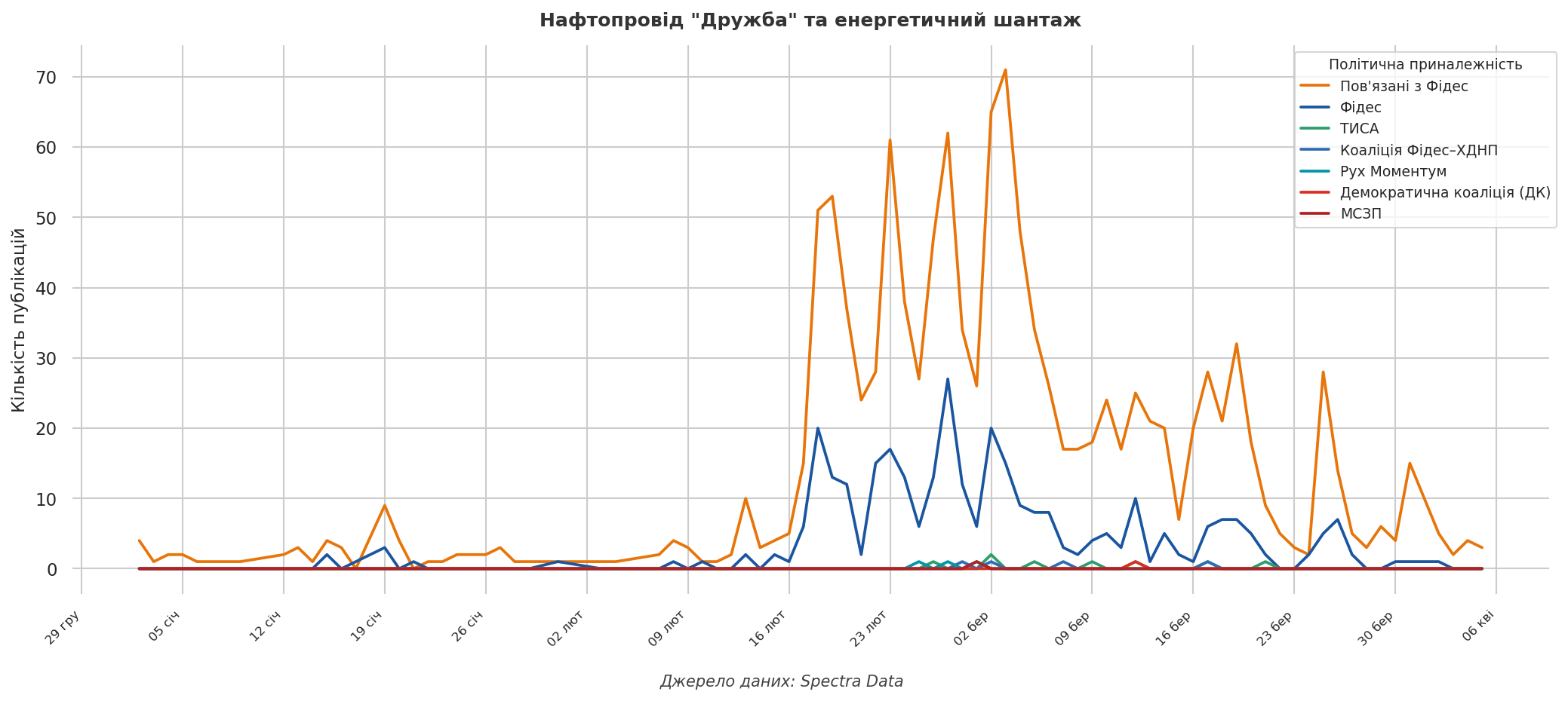 Додатково масла в вогонь підлило пошкодження нафтопроводу “Дружба” внаслідок російської атаки в березні. Що цікаво, кількість дописів з обговоренням України та Зеленського в рамках виборчої гонки була майже однаковою з темою мирних маршів, проте охоплення — втричі меншим.
