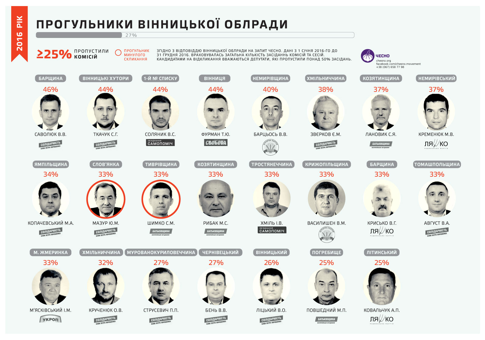 "Вибачайте — чищу сніг біля хати — закидало по самі вуха… Не може бути, що 69% я не беру участі в голосуванні, може бути, що я десь не так часто посіщаю. Але це тому, що на сьогодні я знаходжуся без роботи, а сьодні в мене поїздка з району на Вінницю коштує в районі 500-600 гривень (дорога до Вінниці громадським транспортом займає півтори години, а квиток коштує 56 грн - прим. авт). Посіму, може й не всігда й получається їхати, але всігда я голосую, коли я на сесії, і не ігнорую, і живу, як кажуть, життям району і життям області. Може не так активно, як би комусь хтілося, але на свому рівні, я думаю, що достатньо. Входжу в комісію по здоровоохороні, занімаємся сьогодні плідно округами, які нам реформа від Кабінету міністрів предоставила. Ми активно з цим боремся, тому що так як воно все проходе без обговорень, то воно нікому не потрібне: в першу чергу люди повинні вирішувати, куди їм їздити і де їм обслуговуватись"